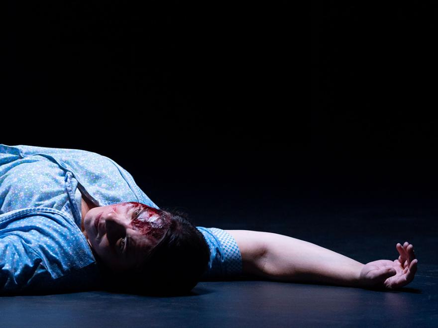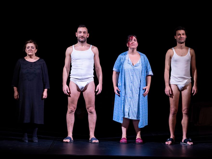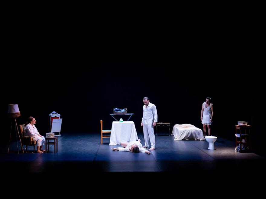 One day, within a family, the habitual violence inflicted by a husband on his wife becomes femicide. The man kills her by smashing her head in with an iron. The woman lies dead on the ground, but her death is not enough to convince anyone. The result is that, like the angel of the hearth in whose image she finds herself imprisoned, the woman is forced to get up and return to her same old routine, cleaning the house, doing the housework, cooking for her husband and son, and taking care of her elderly mother-in-law. Every morning, the family finds her dead but refuses to believe it. Every morning, she gets back up, washes the blood from her face, changes her ripped dress and continues to suffer her husband’s violence, her son’s depression, and the helplessness of her mother-in-law, who indulges her brutal and despotic son instead of condemning him.